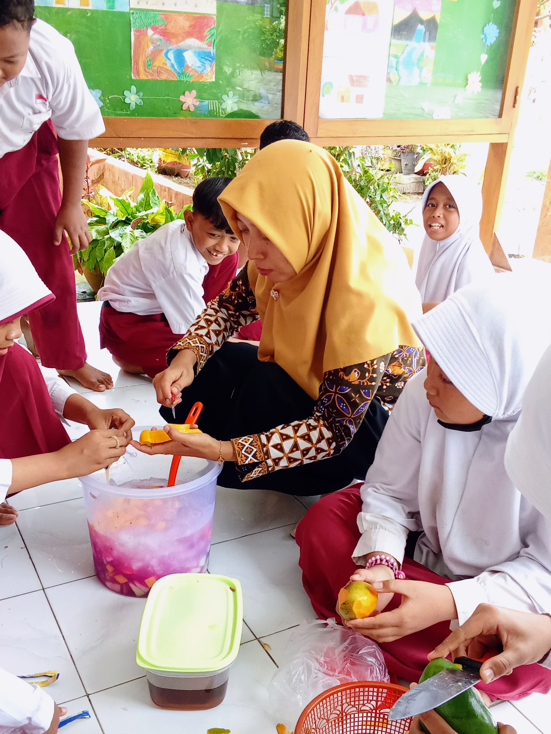 Dalam pembelajaran ini, guru melatih dan menggali kemampuan literasi hitung sederhana yang berhubungan dengan unjuk kerja melalui praktik membuat sup buah yang segar tentunya.